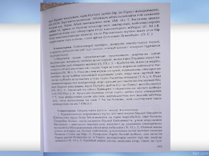 • Тапсырма: • 1) Үстеу және шылауларды оқыту әдістемесі бойынша көрнекіліктер әзірлеу (Бастауыш сынып оқулықтарындағы материалдар бойынша). • 2) Үстеу тақырыбына ҚМЖ, Шылау тақырыбына ҚМЖ (3,4- сынып қазақ тілі). • 3)Үстеу оның түрлерінің зерттелу тарихы. • 4) Шылау,оның түрлерінің зерттелу.