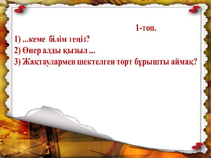 «Ақпарат» тобының сұрақтары: 1 Windows сөзінің қазақша аудармасы 2 Жою пернесі 3 Есептеуіш техникасының дамуын неше кезеңге бөлуге болады 4 Компьютер жанына қойылатын өсімдік 5 Алғашқы есептеу құрылғысы