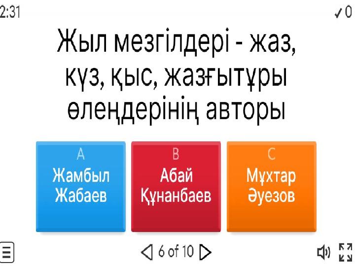 •https://wordwall.net/resource/85802374/%d1 %81%d2%b1%d1%80%d0%b0%d2%9b-% d0%b6%d0%b0%d1%83%d0%b0%d0%bf