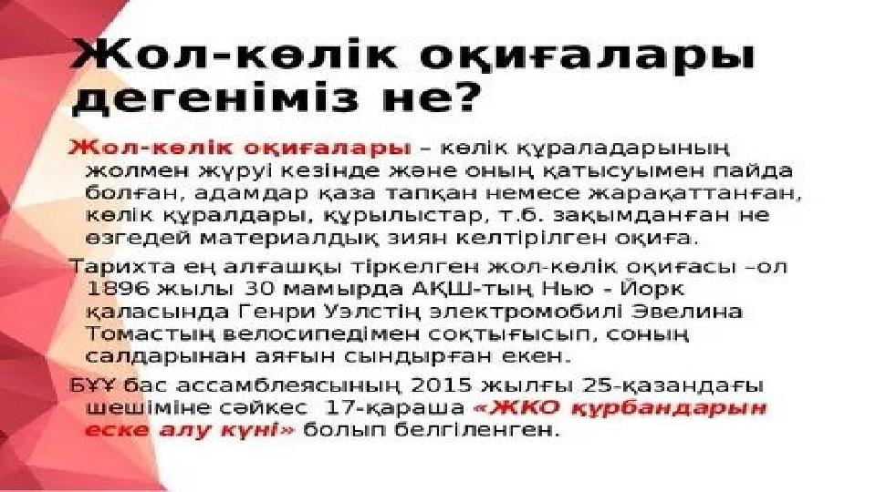 Жол-көлік оқиғасы – бұл адамдар қаза