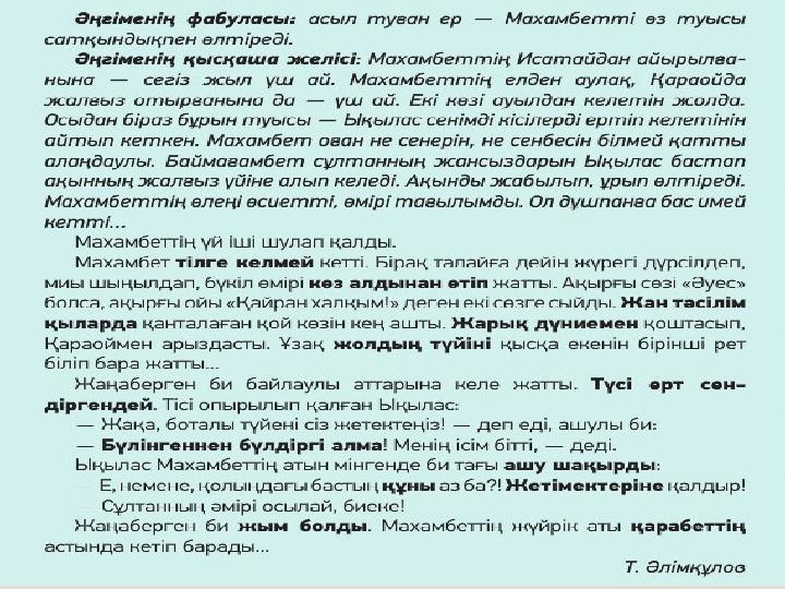 Оқу мақсаты: 8.3.4.1 – мәтіндегі оқиғалар бойынша мазмұнның даму желісін салыстырып, талдау; 8.4.1.1 – мәтіндердің жанрлық және стильдік ерекшелігін сақтап, пікір жазу.