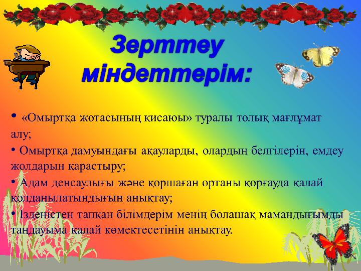 Теориялық мағлұматтарды жинақтап, талдап, омыртқа
