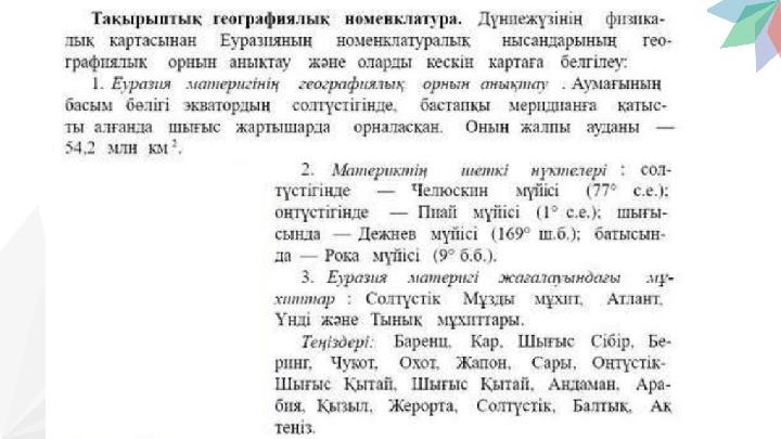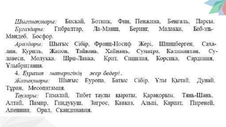 құрылысын, климаттық жағдайын т.б.) көрсетеді.