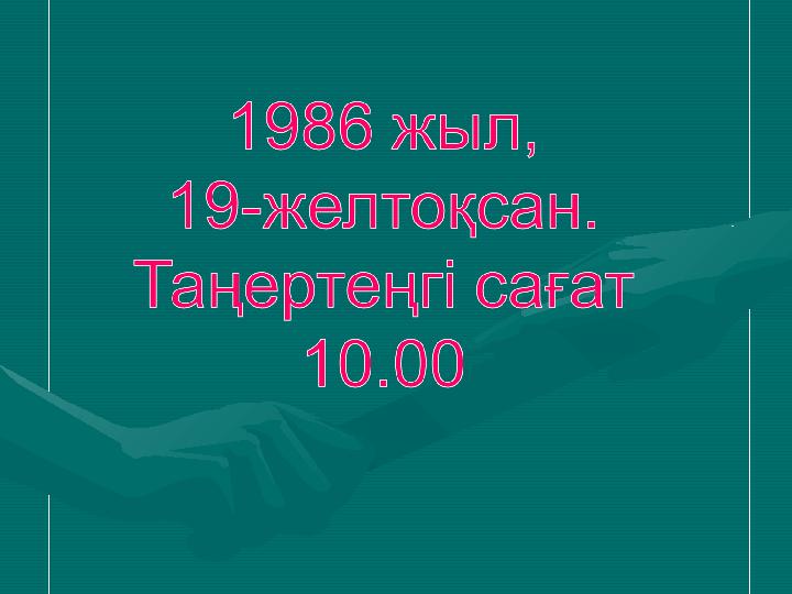 Бар жоғы 18 Бар жоғы 18 минуттың ішінде минуттың ішінде елді абыроймен елді абыроймен басқарып отырған басқарып отырған Дінмұхаммед Дінмұхаммед Қонаев Қонаев қызметінен қызметінен босатылып, босатылып, орнынаорнына Геннадий Геннадий Колбин Колбин ешкімнің ешкімнің пікірінсіз-ақ пікірінсіз-ақ тағайындалған еді.тағайындалған еді. Бар жоғы 18 Бар жоғы 18 минуттың ішінде минуттың ішінде елді абыроймен елді абыроймен басқарып отырған басқарып отырған Дінмұхаммед Дінмұхаммед Қонаев Қонаев қызметінен қызметінен босатылып, босатылып, орнынаорнына Геннадий Геннадий Колбин Колбин ешкімнің ешкімнің пікірінсіз-ақ пікірінсіз-ақ тағайындалған еді.тағайындалған еді.