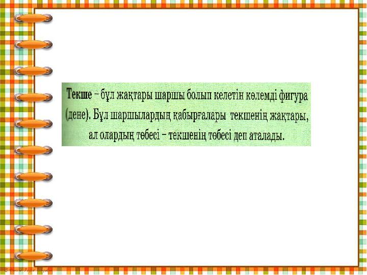 Тақырыбы:Текше (Куб) Оқу мақсаттары:кеңістіктік геометриялық фигуралардың (тікбұрышты параллелепипед, куб) жазбасын дайындау және олардың моделін құрастыру.