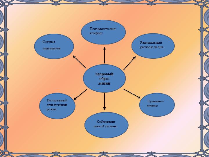 Здоровье – бесценный дар природы. Мало кто знает, что 10 % здоровья нам дается генетически, 5 % дает медицина, а 85 % здоровья зависит от нас самих, от нашего образа жизни. Часто мы забываем, что потерять здоровье легко, а вернуть очень трудно. А что такое крепкое здоровье? Богатство не в золоте, добытом кровью. Богатство и сила народа в здоровье. Здоровье народа превыше всего Богатства земли не заменят его Здоровье не купишь, никто не продаст Его берегите, как сердце, как глаз! Ж.Жабаев