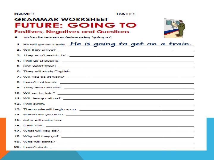 Дополните предложения глаголами в скобках, используя Future Simple или Going t o 1 A: Have you finished your essay yet? B: No, but I'm sure I ..... (finish) it on time 2 A: I have decided what to wear for the party B: Really? What ..........(wear), then? 3 A: Why do you need hot soapy water? B: Because I.......... (wash) the car. 4 A: Did you post those letters? B: No, I forgot. I.........(post) them this afternoon 5 A: Did you book a table at the restaurant? B: Yes, but I don't expect it...........(be) busy.