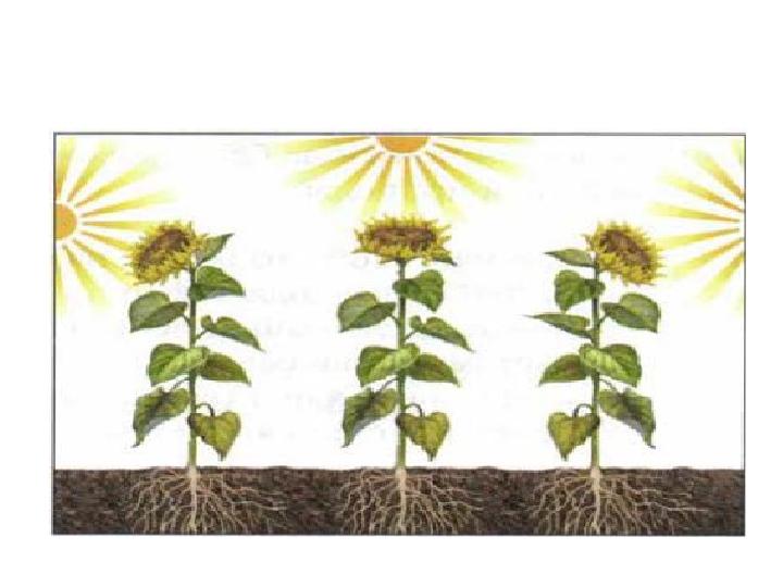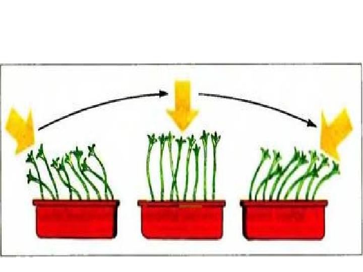 Тропизм •Дұрыс тропизм-сыртқы тітіркендіргіштің бір жақты әсер етуіне байланысты өсімдік мүшелерінің тітіркендіргішке қарай биіктеп өсуі. •|Теріс тропизм тітіркенгіштіктің кері әсеріне қарай бағытталып өсуі