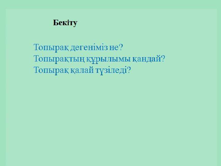 Бүгінгі сабақта: Топырақ дегеніміз не? Топырақтың құрылымы қандай? Топырақ қалай түзіледі?