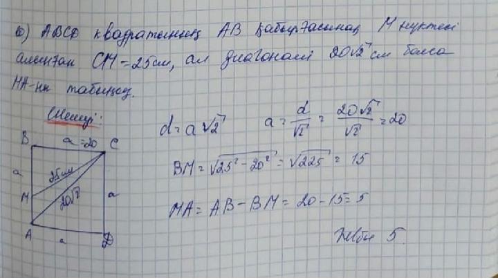 Квадраттың диагоналдары оның бұрыштарының