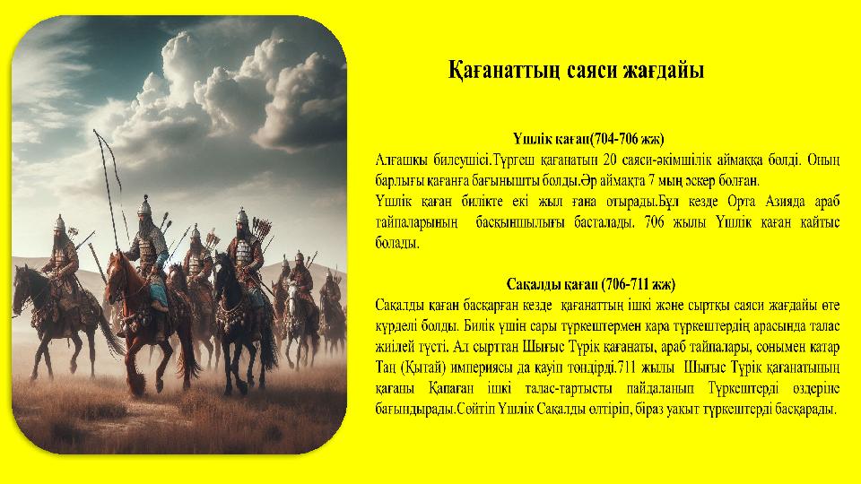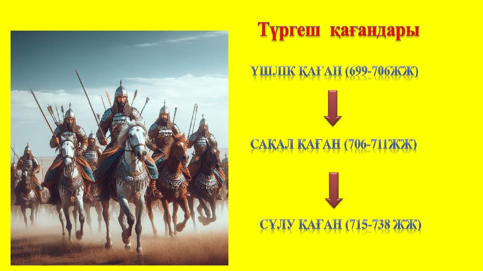 Түркеш қағанатының құрылуы Тәуелсіздігінен айырылған түрік тайпалары Қытай басқыншыларына қарсы көтеріліске шығып отырды. Олардың ішінде тек қана түркеш тайпасы VIII ғасырдың басында өз мақсаттарына жетеді. 704 жылы Түркеш тайпасының көсемі Үшліктің басшылығымен түркеш әскерлері қытайларды жеңеді.Міне осы кезден бастап Түркеш қағанаты Батыс Түрік қағанатының орнына құрылады. Түркеш қағанатының нақты құрылған уақыты деп 704 жылды айтамыз.