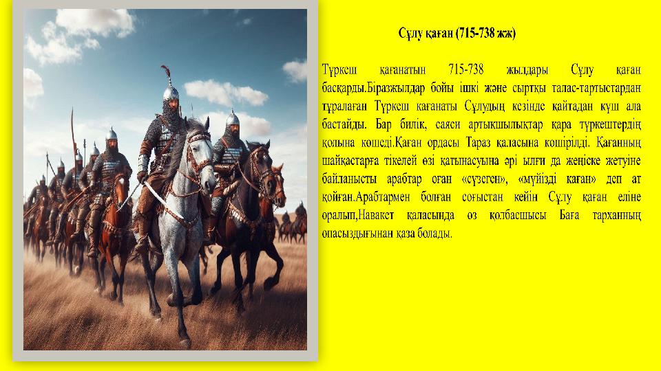 751 жылғы Атлах шайқасы Сұлу қаған қайтыс болғаннан кейін сары және қара түркештер арасында 20 жылға созылған талас-тартыс басталады.Қағандықтың саяси және экономикалық жағдайын мүлде әлсіретіп жібереді. Қағандықтың мұндай жағдайын біліп отырған Қытай империясы Куш қаласындағы (Шығыс Түркістан) әскерін Жетісуға аттандырып, 748 жылы Суябты жаулап алады. Бұдан кейін Қытай әскерлері Ташкентті басып алып, оның әмірін өлтіреді. Әмірдің ұлы арабтарды көмекке шақырады. 751 жылы Тараз маңындағы Атлах қаласының түбінде арабтармен қарлұқтар бірігіп қытай әскерін жеңеді. Бұл жеңіс Орта Азия жеріндегі Қытай империясының билігін біржолата жояды.