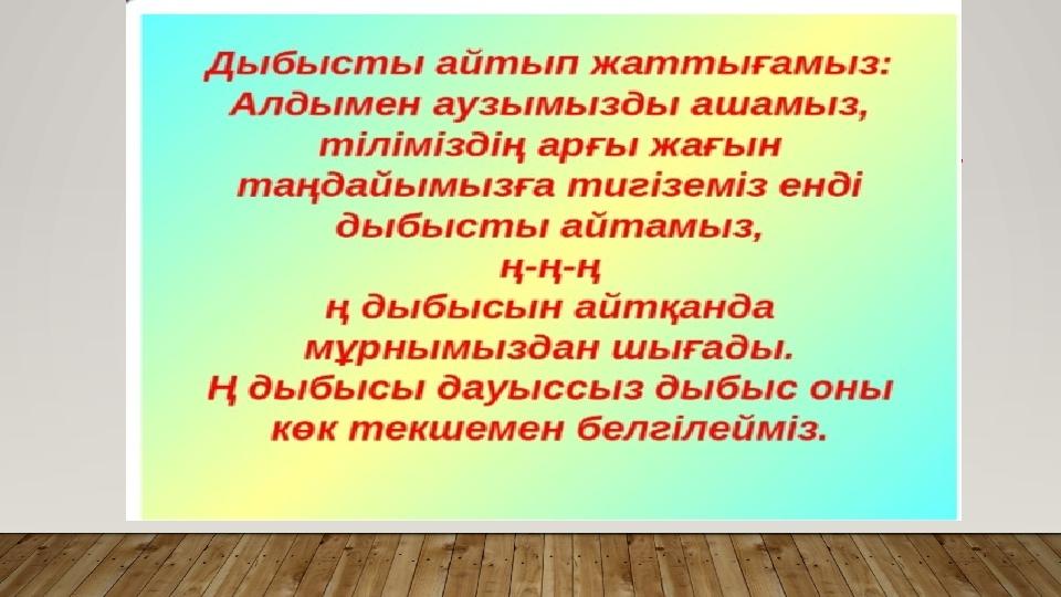 «Ң» ДЫБЫСЫН МАШЫҚТАНДЫРУ АЛМАТЫ ОБЛЫСЫ САРҚАН АУДАНЫ АБАЙ АТЫНДАҒЫ МЕКТЕП ГИМНАЗИЯСЫ ЛОГОПЕД МАМАНЫ САРСЕНОВА РОЗА ЛЕСОВНА
