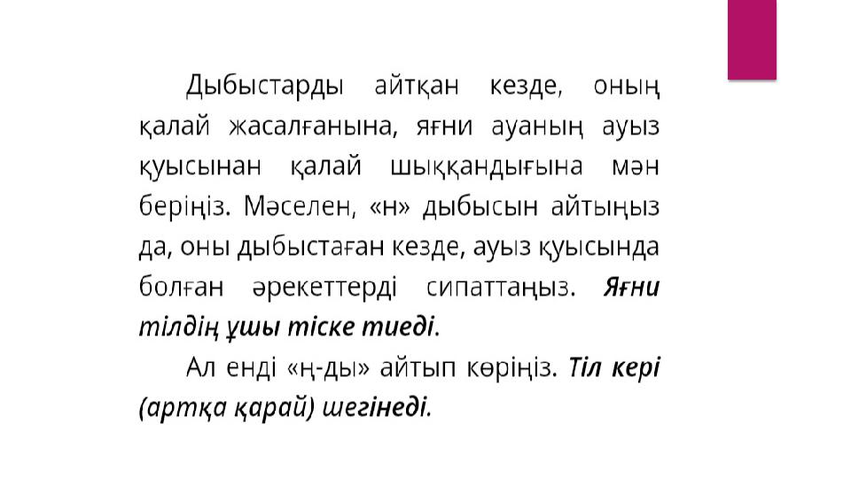 «Ң» дыбысы мен «Н» дыбысын ажырату АЛМАТЫ ОБЛЫСЫ САРҚАН АУДАНЫ АБАЙ АТЫНДАҒЫ МЕКТЕП ГИМНАЗИЯСЫ ЛОГОПЕД МАМАНЫ САРСЕНОВА РОЗА ЛЕСОВНА
