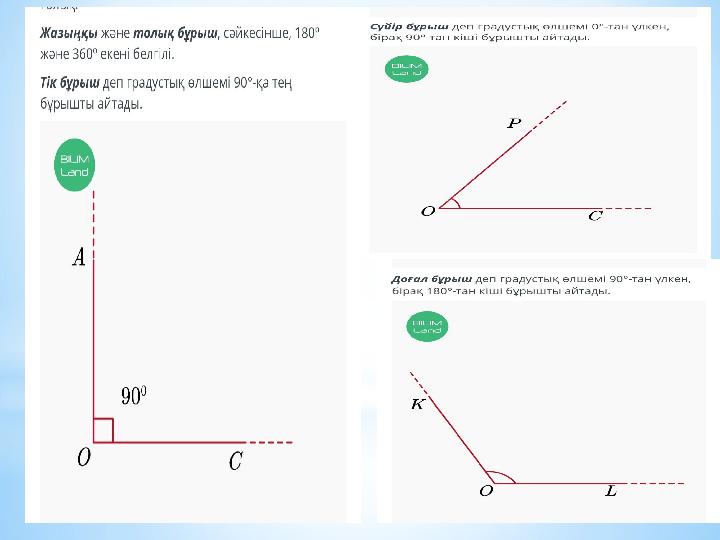 - Бұрыштардың түрлерін ажыратып үйрене c іңдер: