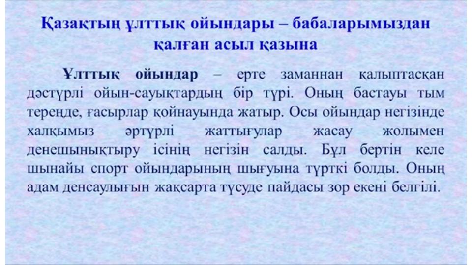 ҰЛТТЫҚ ОЙЫНДАРЫМЫЗ