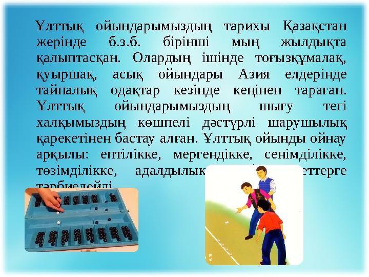 ұлттық ойыны Мақсаты: Ұлтық ойынды дәріптеу,