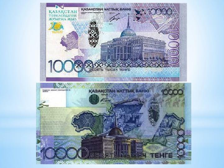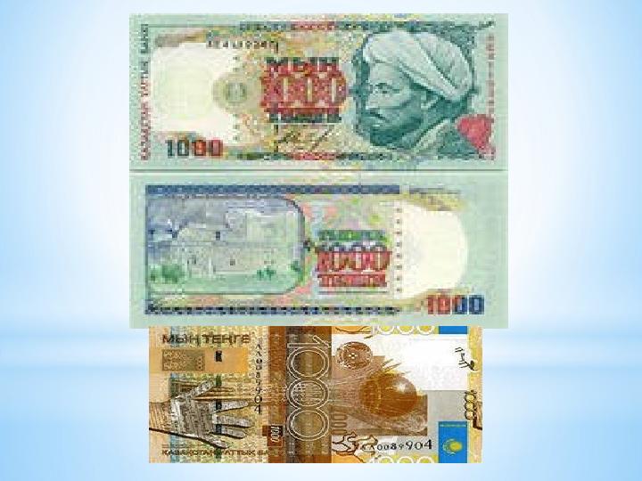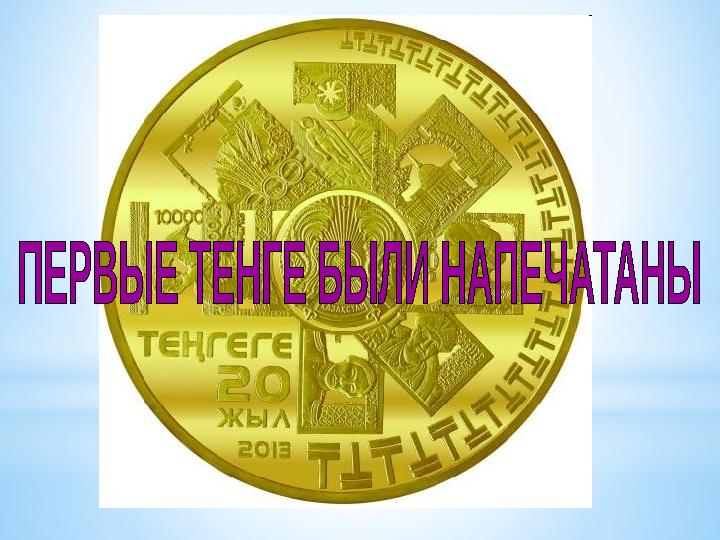 * Тенге - первый денежный знак суверенного Казахстана. Слово “деньги” произошло от тюркского “тенге”.