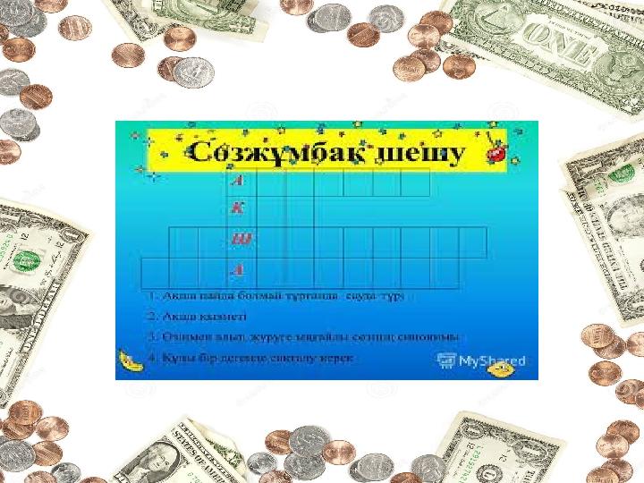 Әр адам ақшаға барлық нәрселерді сатып алуға болмайтынын білу керек Ақшаға дәрі сатып алуға болады.... бірақ (денсаулықты емес) ақшаға сағат сатып алуға болады…бірақ (уақытты емес) ақшаға кітапты сатып алуға болады… (бірақ даналықты емес) Ақшаға уақытша достар сатып алуға болады… (нағыз досты сатып алуға болмайды) ақшаға қоғамдағы орнын сатып алуға болады… (бірақ халықтың құрметін емес) ақшаға ойын сауықтарды сатып алуға болады… (бірақ бақытты емес)