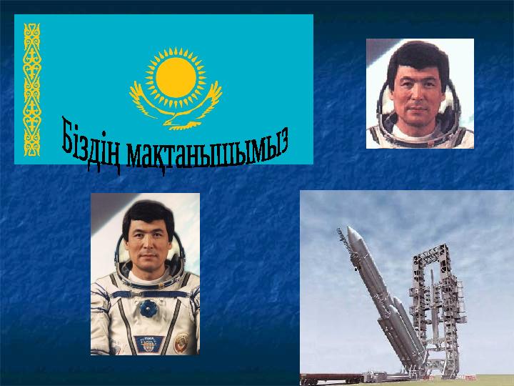 Тоқтар Әубәкіров — Тоқтар Әубәкіров — Қазақстанның тұңғыш Қазақстанның тұңғыш ғарышкеріғарышкері 1991 ж 2 қазанда Байқоңыр ғарыш алаңынан “Союз ТМ - 12” 1991 ж 2 қазанда Байқоңыр ғарыш алаңынан “Союз ТМ - 12” ғарыш кемесімен ұшып, “ Мир” орбиталдық комплексінеде өзге ғарыш кемесімен ұшып, “ Мир” орбиталдық комплексінеде өзге ғарышкерлермен бірге сегіз тәулік бойы ғылыми ө зерттеу ғарышкерлермен бірге сегіз тәулік бойы ғылыми ө зерттеу жұмыстарын жүргізіді. 1992 ж. сәуірінен — Қазақстан жұмыстарын жүргізіді. 1992 ж. сәуірінен — Қазақстан Республикасы қорғаныс мемлекеттік комитетінің төрағасының Республикасы қорғаныс мемлекеттік комитетінің төрағасының бірінші орынбасары, Қазақстан Республикасы Президентінің бірінші орынбасары, Қазақстан Республикасы Президентінің ғарыш игеру жөнінде көмекшісі.ғарыш игеру жөнінде көмекшісі. Парламентке сайланудын алдында Қазақстан Республикасы Парламентке сайланудын алдында Қазақстан Республикасы Ұлттық аэроғарыш агенттігінің бас директоры, Алматы қаласы.Ұлттық аэроғарыш агенттігінің бас директоры, Алматы қаласы. Қазақ КСР Жоғарғы Кеңесінің 12 шақырылым депутаты, ҚР Қазақ КСР Жоғарғы Кеңесінің 12 шақырылым депутаты, ҚР Жоғарғы Кеңесінің 13 шақырым депутаты, Қазақстан Жоғарғы Кеңесінің 13 шақырым депутаты, Қазақстан Республикасының Парламенті Мәжілісінің 3-ші шақырылым Республикасының Парламенті Мәжілісінің 3-ші шақырылым депутаты болып сайланған.депутаты болып сайланған. 1991 Ю.А. Гагарин атындағы Ғарышкер дайындау орталығында 1991 Ю.А. Гагарин атындағы Ғарышкер дайындау орталығында әзірлгін бастады, сынаушы ғарышкер-ұшқышы, сынаушы. «Союз әзірлгін бастады, сынаушы ғарышкер-ұшқышы, сынаушы. «Союз ТМ» ғарыш кемесінде және «Мир» орбиталды кешенінде ТМ» ғарыш кемесінде және «Мир» орбиталды кешенінде сынаушы ғарышкер-ұшқышы жылдамдатылған машықтануын сынаушы ғарышкер-ұшқышы жылдамдатылған машықтануын ұшу бағдарламасы бойынша өтті.ұшу бағдарламасы бойынша өтті. 1991 ж. қазанның 2-інде Тоқтар Әубәкіров зерттеуші ғарышкер 1991 ж. қазанның 2-інде Тоқтар Әубәкіров зерттеуші ғарышкер есебінде, Александр Волков және аустрия ғарышкері Франц есебінде, Александр Волков және аустрия ғарышкері Франц Фибөк, «Союз ТМ-13» ғарыш кемесімен ғарышқа ұшуға кірісті. Фибөк, «Союз ТМ-13» ғарыш кемесімен ғарышқа ұшуға кірісті. Апта бойы «Мир» орбиталды кешенінде жұмыс істеді. 1991 ж. Апта бойы «Мир» орбиталды кешенінде жұмыс істеді. 1991 ж. қазанның 10-ында Тоқтар Әубәкіров, Анатолий Арцебарский, қазанның 10-ында Тоқтар Әубәкіров, Анатолий Арцебарский, аустрия ғарышкері Франц Фибөк «Союз ТМ-13» ғарыш кемесімен аустрия ғарышкері Франц Фибөк «Союз ТМ-13» ғарыш кемесімен Жерге қайтып қонды. Ғарышта өтеген мерзімі — 7 күн 22 сағат 13 Жерге қайтып қонды. Ғарышта өтеген мерзімі — 7 күн 22 сағат 13 минут.минут.