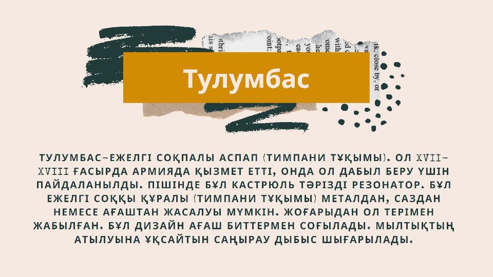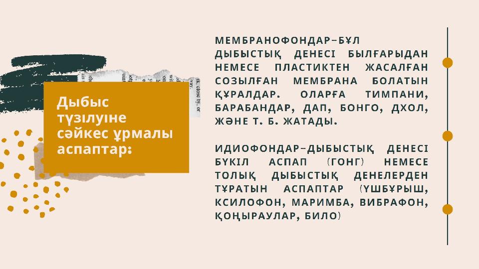 дауылпаз, керней, дабыл сияқты тұрмыста кеңінен