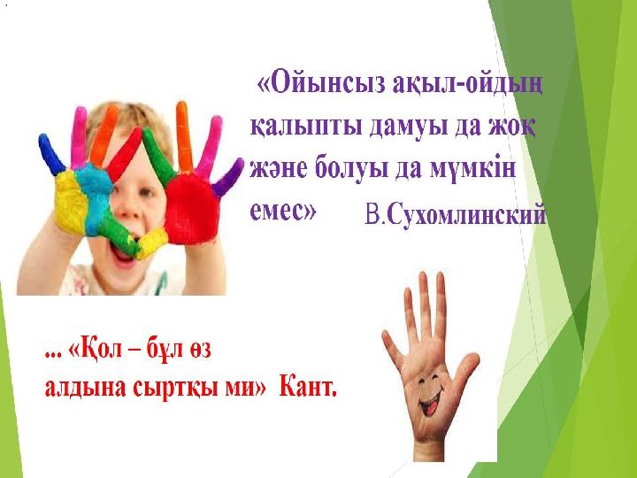 “Балалардың қабілеттері мен дарындылығы олардың саусақтарының ұшында. Бейнелеп айтқанда, саусақтардан шығармашылық ойдың қайнар көзін сусындататын аса нәзік жылғалар бастау алады.” Василий Александрович Сухомлинский