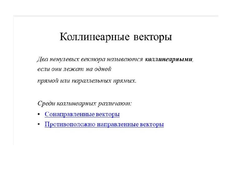6. Согласны ли вы, что любые два противоположно- направленных вектора коллинеарны?