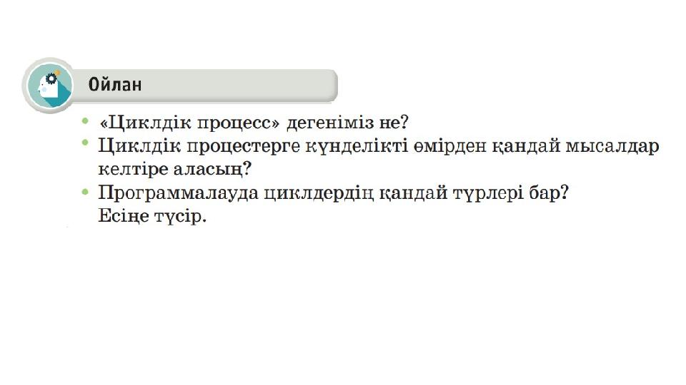 While циклі 8.3.3.1 While (уайл) цикл операторын пайдалану; Сабақтың мақсаты: While (уайл) цикл операторын есептер шығаруда қолдану