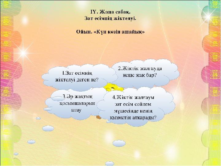 №88 -сабақ. Зат есімнің жіктелуі Сабақтың мақсаты: 4.4.2.2 – жіктік жалғауларының қолданысын білемін. Мұғалім:Мусабаева Асел Ураковна Сабақтың тақырыбы