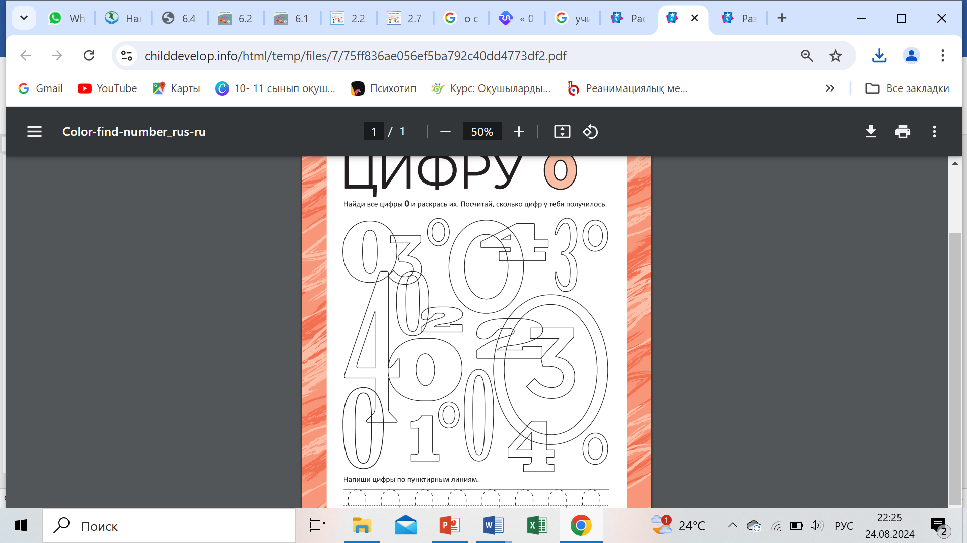 Жаңа сабақ тақырыбын таныстыру: «0 саны мен цифры» Сабақ мақсатын хабарлау: Оқушылар, бүгінгі сабақта «0 саны мен цифрын» құрамын анықтауды, жазуды үйренетін боласыңдар. 0 цифры қалай жазылатынын анықтап мән беріп қарап шығыңдар. (баспа негіздегі дәптердегі жазу). Арнайы педагог 0 цифрын тақтада, дәптерге жазып көрсетеді.