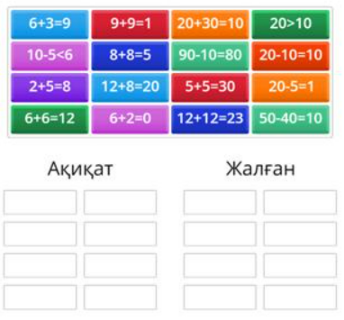 Бір-біріне құрмет сезімін ояту Көңіл күйлерін жеткізеді Сұрақтарға жауап береді Тапсырмалар ды орындайды бөлу кестесін пайдаланады. Ақиқат пікірлер Жалған пікірлер Пікірлерді анықтайды. Кері байланыс береді |