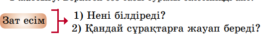 Сөз таптарынан зат есімді ажыратады. Тыңдаған материал бойынша түсінбеген сөздерін белгілеп, мəтін мазмұны бойынша қойылған сұрақтарға жауап береді. Дара жəне күрделі зат есімді анықтайды. |