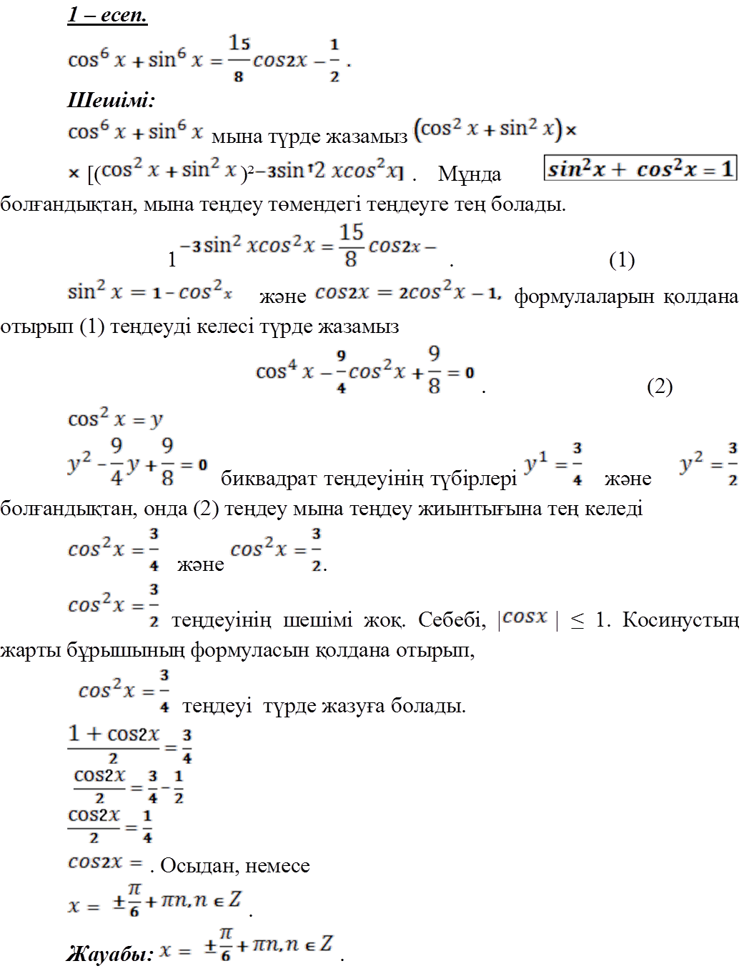Тригонометриялық теңдеулер және олардың жүйелерін шешу әдістері |