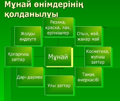 Ақпаратты түртіп алады. Ой бөліседі. Мұнай өнімдерінің қолданылуын жазып алады.