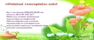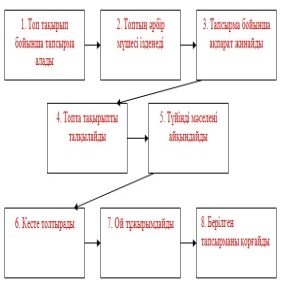 5-тапсырма: Жұптық жұмыс Оқулықта берілген тапсырмаларды орындатады, бақылайды, мысал, үлгі көрсетеді. 7- тапсырма Топтық жұмыс