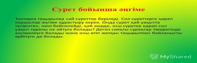 Айтылым Топқа бөлініп, тапсырмаларды орындайды. 1-топ: Мұғалім ұсынған сурет бойынша мәтін құрайды.