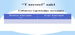 Мақсаты: Жылдам әрі функционалды түрде сыни ойлануды дамыту. Тиімділігі: оқушының танымдық дағдысы артады. |