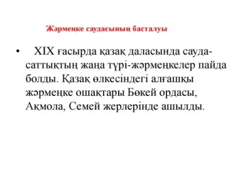 Жазылым 1-топ: «Оймоншақ» тәсілі арқылы сауданың даму жолына тұсаукесер дайындайды.. 2-топ: «Шындық па, жалған ба» кестесі арқылы тапсырма орындайды.