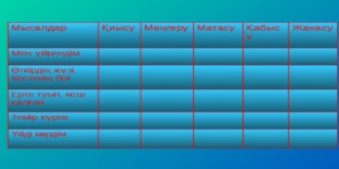 Айтылым Тапсырманы орындайды. Мұғалім ұсынған кестедегі сөйлемдерді сәйкестендіреді.