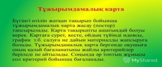 10.4.4.1-тақырып бойынша мәтінге жоспар құрып,әр тармақшаға қажетті негізгі және қосымша мәліметтерді жинақтап ұсыну (тірек-схема,менталды карта,презентация) |