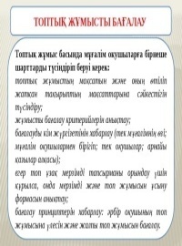 Дескриптор 5 балл -топпен жұмыс жасайды -мәтінді оқиды