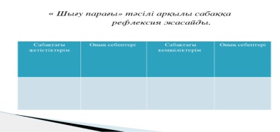 Сабақтың соңы Ой толғаныс. Рефлексия 7 мин.