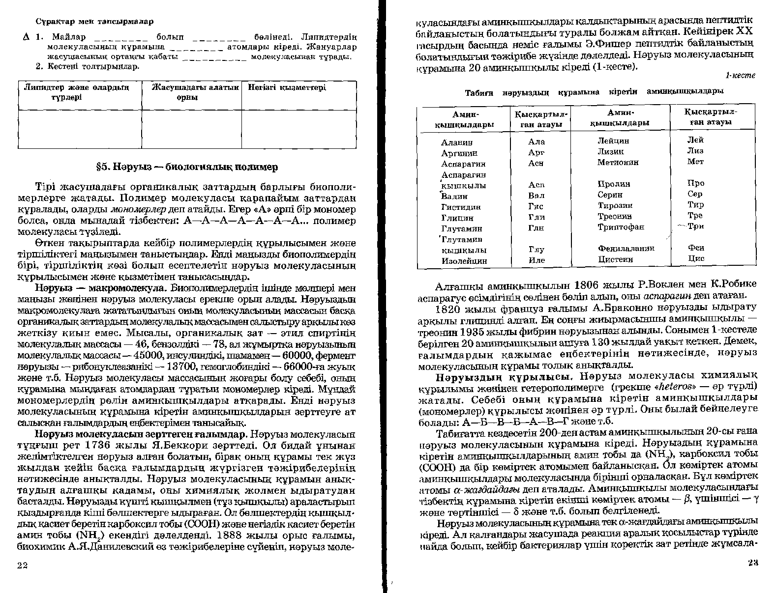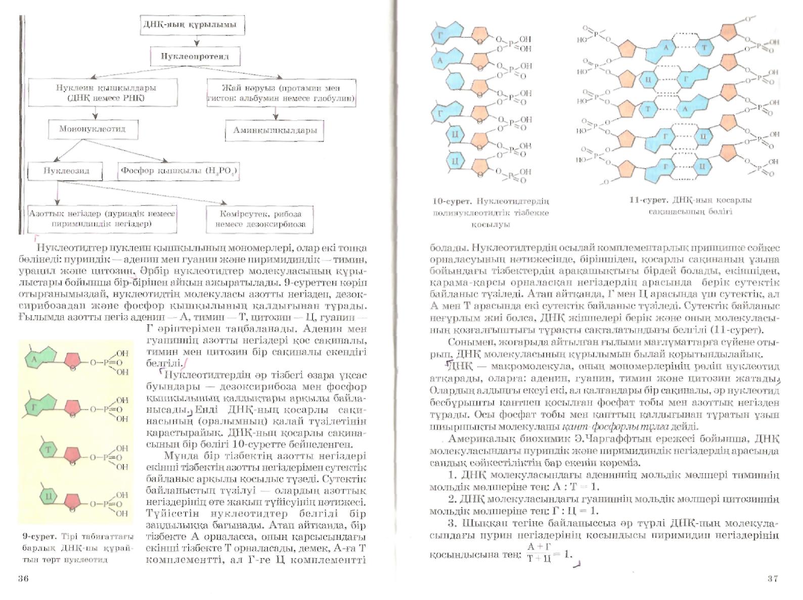 Білу. «Жадылық серуен» әдісі бойынша жаңа тақырыпты өткен сабақпен байланыстырып сұрақ қою. Сұрақ жазу Биология - Жер бетіндегі тірі ағзалардың орасан зор сан алуан формаларын және түрлерін зерттейтін тіршілік туралы ғылым. Биологияның міндеті - тірі ағзалардың қасиеттерін зерттеу және олардың сан алуандығын, құрылыстарынын өзара байланыстары мен қоршаған орта жағдайларын түсіндіре білу. Бактерия-лардың кұрылысы мен тіршілік әрекеттерінін қасиеттерін микробиология окытып үйретеді; ботаника барлык, өсімдіктердің құрылысы ж/е физиологиялық қасиеттерін зерттейді; жануарлар дүниесін -зоология, саңырауқұлақтар дүниесін микология зерттеп үйретеді.Мәселен, генетика ағзалардың тұқым қуалаушылық және өзгергіштік қасиеттерін окытып үйретеді. Ағза-лар құрылымына енетін химиялық заттардын құрамын, таралуы мен өзгеруін биохимия зерттейді. Тіршіліктің жалпы касиеттері және мол-қ деңгейде пайда болуын; тірі ағзалардың қоршаған орта-дағы өзара қатынасын экология окытып үйретеді. Біртүтас ағза мен онын бөлшектері атқаратын ерекшеліктерді физиология зерттейді. цитология (жасуша-тану) тірі жүйе ретіндегі жасушаның күрылымын, атқаратын қызметін және қасиеттерін, т. б. зерттейді |