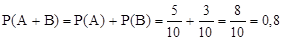 10.3.2.3 - ықтималдықтарды қосу ережелерін түсіну және қолдану * P(A + B) = P(A) + P(B) * P(A +B) = P(A) + P(B) – P(A ∙ B); |