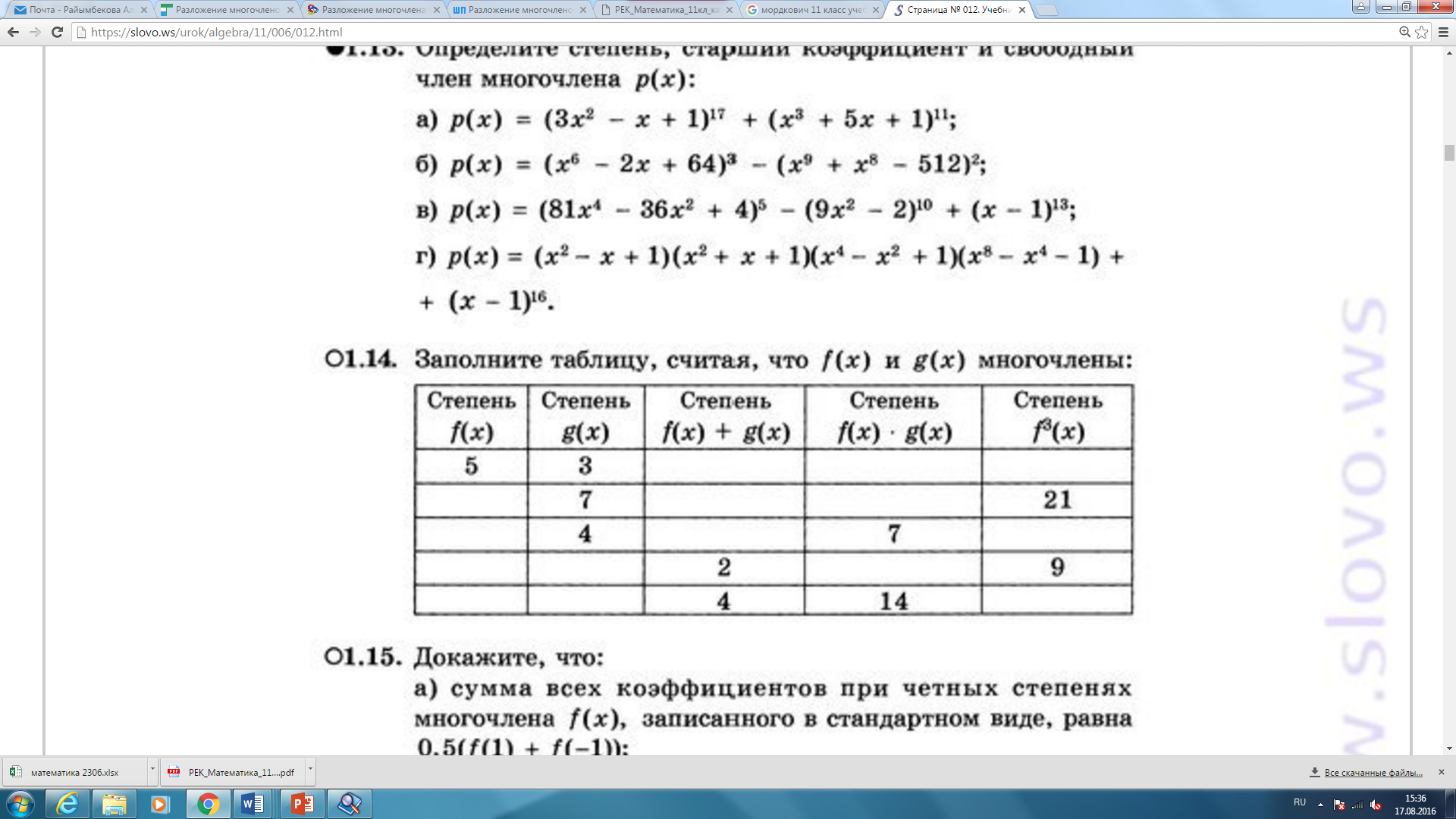 10.2.1.1 - бірнеше айнымалысы бар көпмүшенінің анықтамасын білу және оны стандарт түрге келтіру, стандарт түрдегі көпмүшенің дәрежесін анықтау |