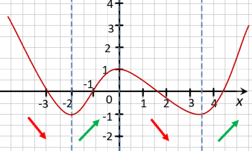 10.4.1.27 - функцияның өсу (кему) аралықтарын табу |