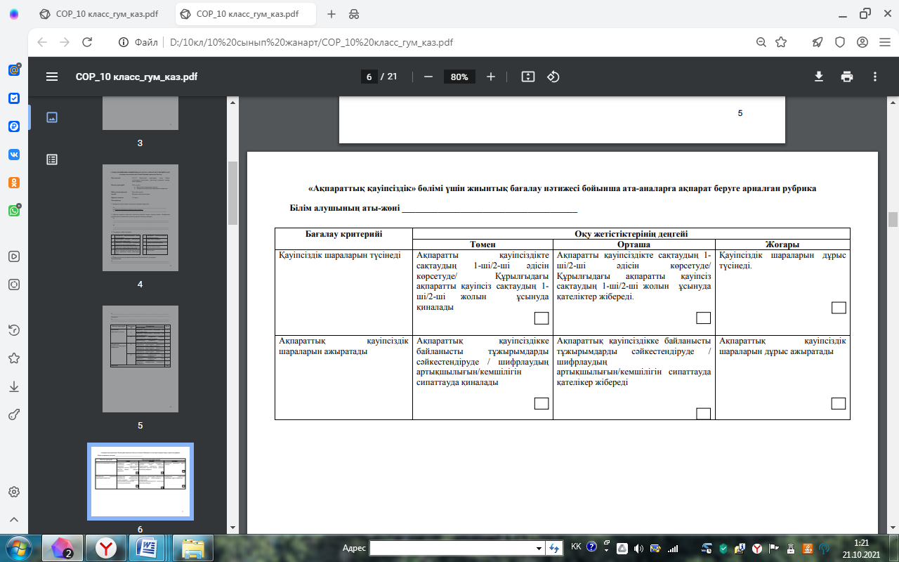 «Ақпараттық қауіпсіздік» бөлімі бойынша жиынтық бағалау