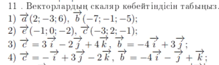 Дескриптор: 1.Есеп мазмұнын түсінеді. 2.Скалярлық көбейтіндісін табады. 3.Жауабын анықтайды. |