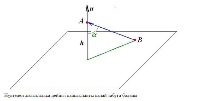 Жаңа сабақты түсіндіру Нүктеден жазықтыққа дейінгі арақашықтық осы нүктеден жазықтыққа түсірілген перпендикуляр ұзындығына тең. Барлық геометриялық құрылыстар мен өлшемдер осы анықтамаға негізделген.