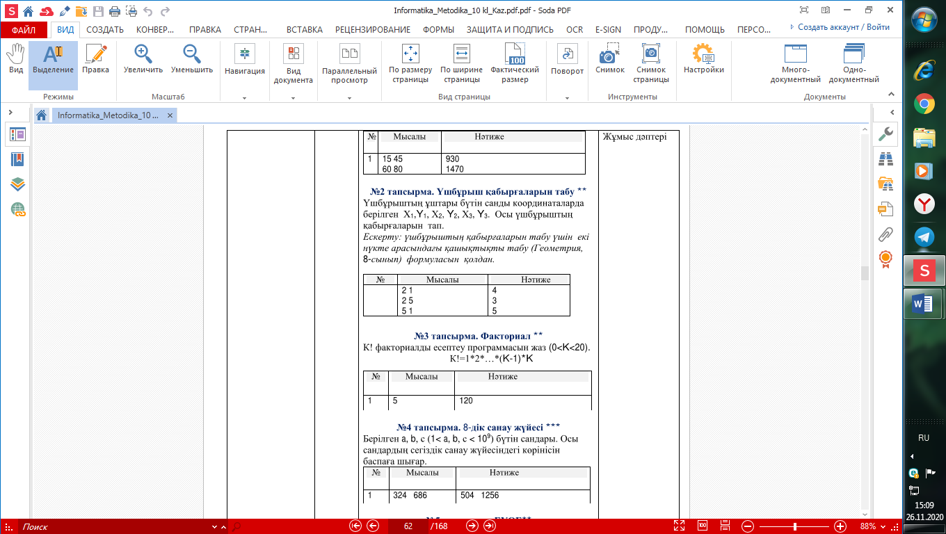 Практикум. Функциялаларды пайдаланып программалау тілінде код жазу |